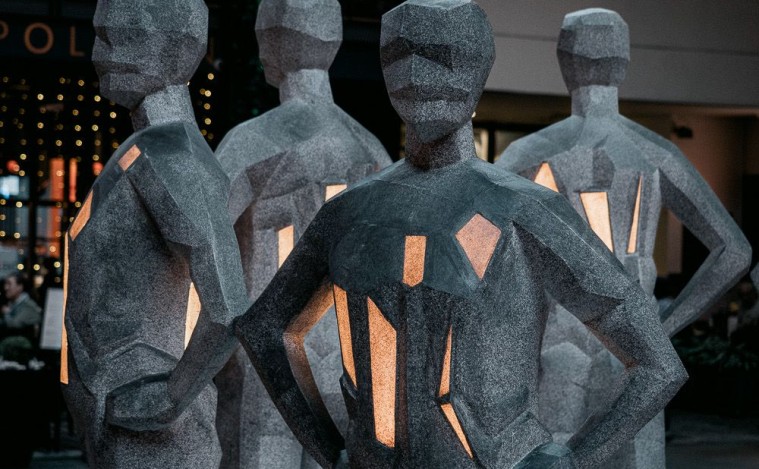 This interactive statue symbolizes a visual language of support with each figure in the installation representing people from around the world joining together by joining elbows for change – a fight everyone can join whether they take big actions or small.